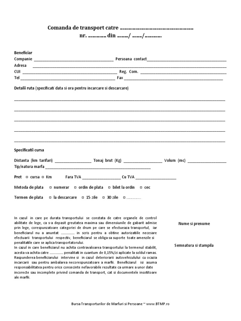 Model Comanda Transport