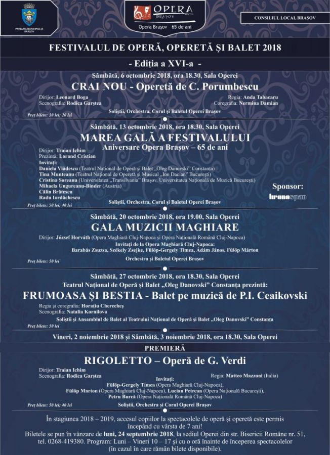 Festivalul De Operă Operetă și Balet 2018 Spectacole Brasov
