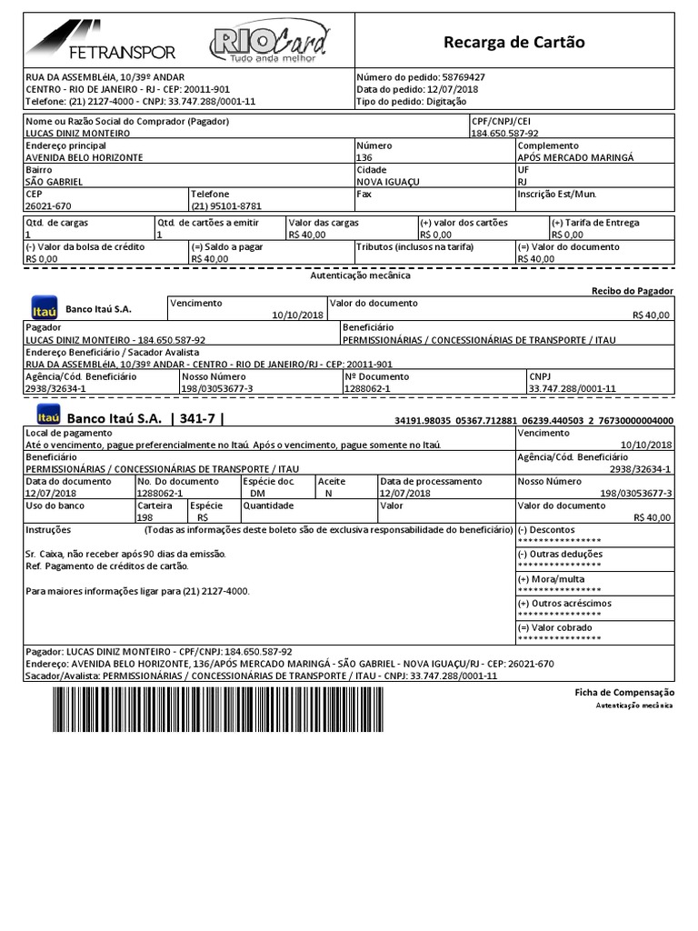 Boleto Bilhete Unico Lucas Industrias De Servicos Pagamentos
