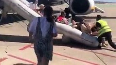 Portable En Feu Evacuation D Un Avion Ryanair A L Aeroport Sur