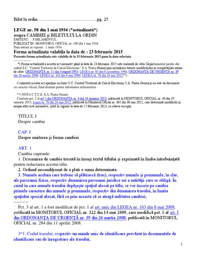 Cambie Si Bilet La Ordin Legea 58 1934